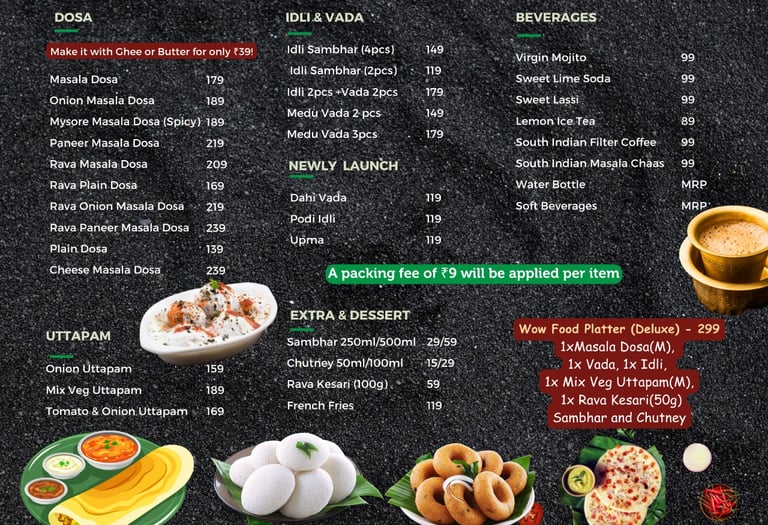 Reserve your spot to enjoy authentic South Indian flavors at wow idli dosa.